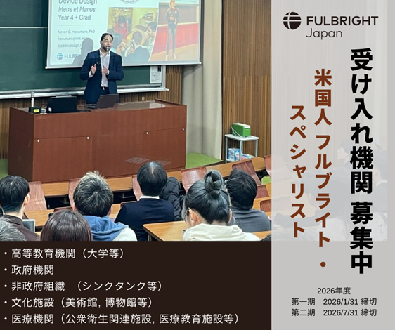 この度、日米教育委員会(フルブライト・ジャパン)は、2026年度 米国人フルブライト スペシャリストの日本国内受け入れ機関を募集します。