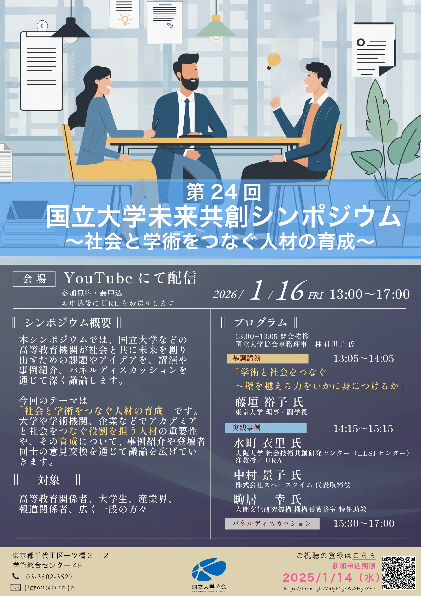 今回は「社会と学術をつなぐ人材の育成」をテーマとして、実際に社会と学術をつないでいる方々、